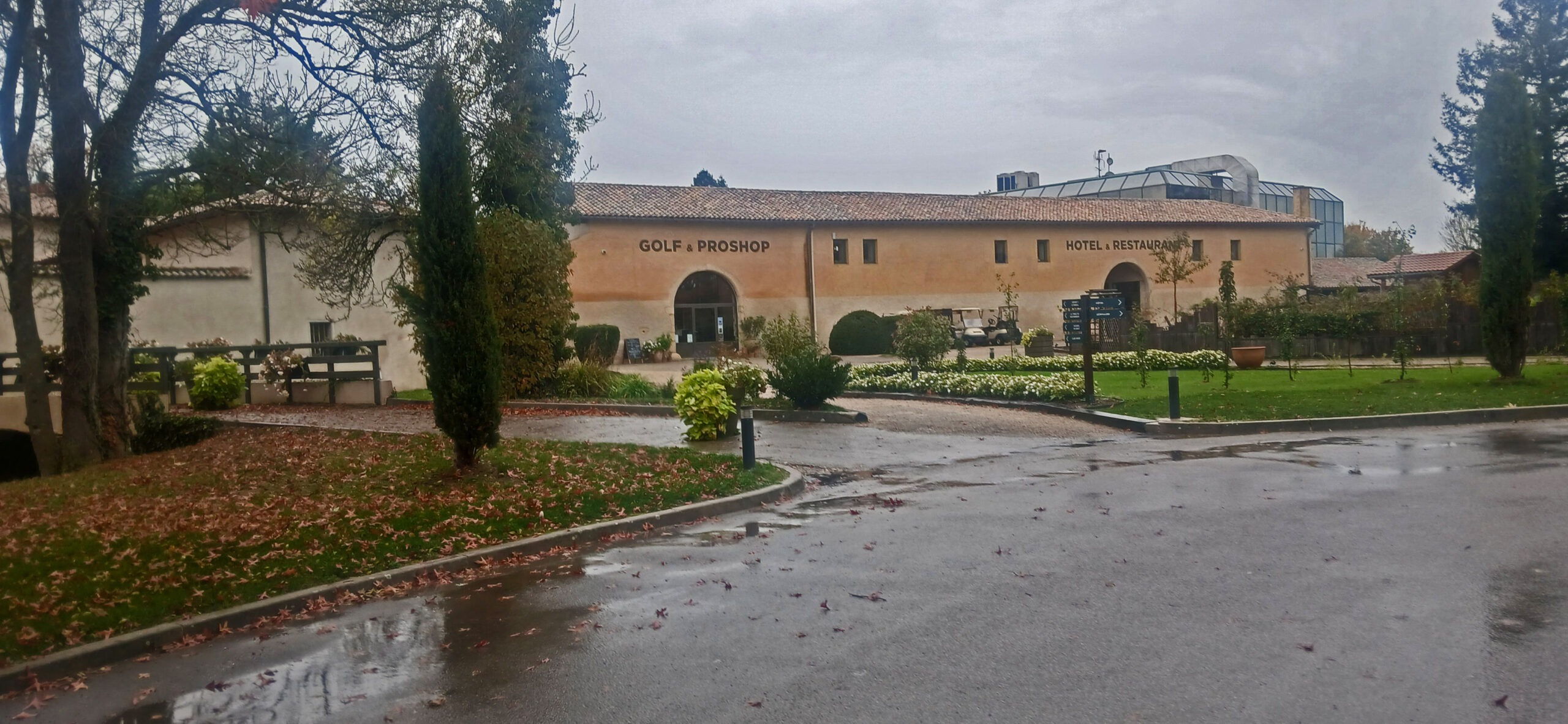Madame le maire ne permettait aucune augmentation de surface ; il y avait une étable à l’emplacement de l’hôtel, j’ai transformé cet emplacement par un bâtiment façades miroirs, pourquoi ? « Miroir de l’homme face aux reflets étangs de la Dombes ». J’ai couvert le practice d’entraînement sur l’étang devant, et placé 2 parkings de 300 places et 46 places respectivement depuis l’entrée.